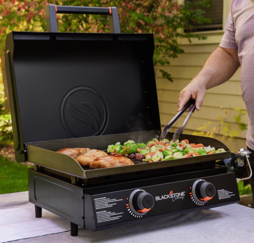 Create your new favorite dishes on the portable Blackstone 22” griddle with hood. This griddle is great to take with you whether you are camping, tailgating, or just going next door. It is also easy to store and great for use in a limited amount of space. Take this griddle with you on your next camping trip and enjoy the taste of home on your next adventure.