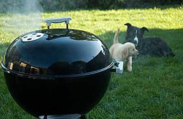 Weber and other grill manufacturers recommend a method of banking the coals on two sides with a pan of water in the center, underneath the food (shown at left). This concept is called 2-zone cooking and it is an essential concept in good outdoor cooking. But there is a better way that gives you more indirect cooking area and won't get the meat too hot on the edges.