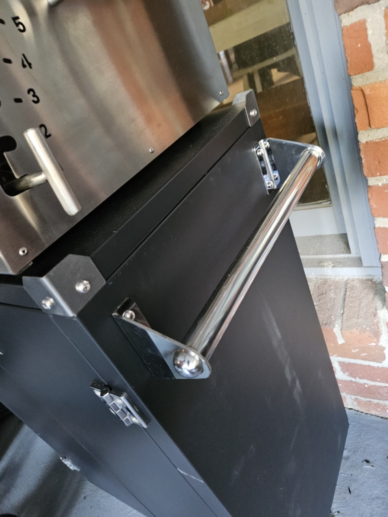 Aside from two suggestions—increasing the number of shelves or offering additional ones for sale, plus making the towel bar removable so it can be used for paper towels—there is so much to love about this unit. While it took quite a while to construct, the end result was an extremely solid structure that will last for many years. The parts also fit together very tightly, so while it isn’t 100% waterproof without purchasing the cover, it should keep your charcoal or pellets and other gear dry in most conditions.